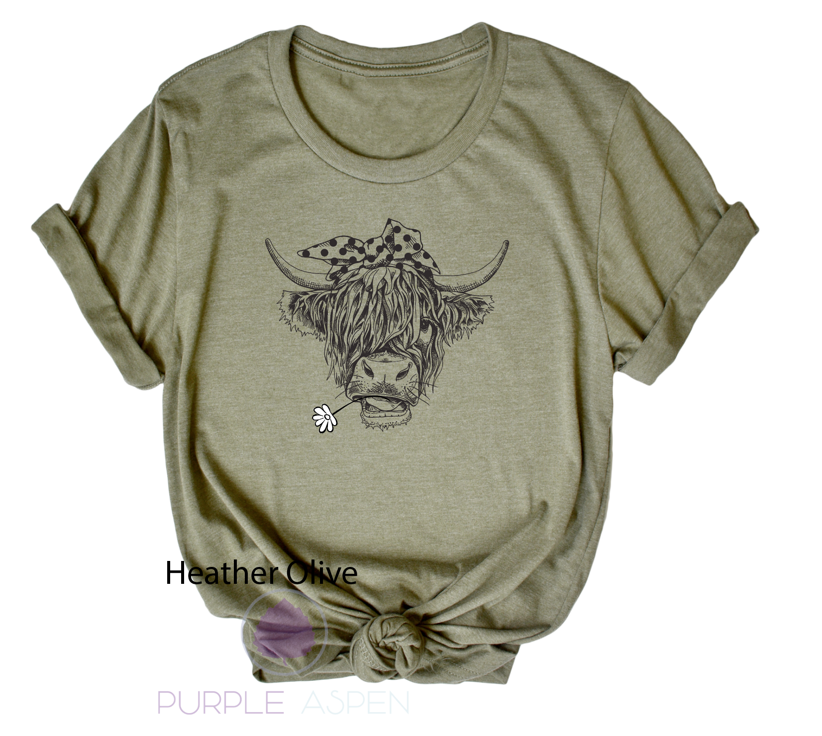 Cute Cow Shirt Shown with a polka dot headband and a daisy in her mouth!