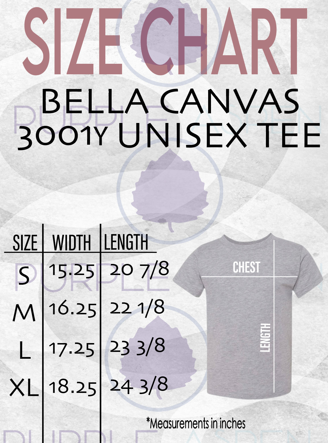 - Standard sizing and size chart attached.